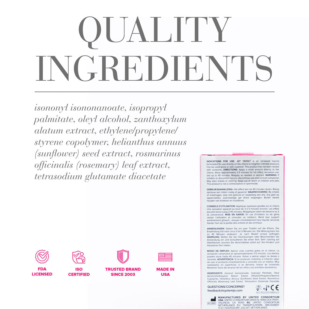 Plug Into Pleasure – Apply 1–2 drops directly to the clitoris and let the buzz begin. Sensation builds in 3–5 minutes and can last up to 45 minutes.