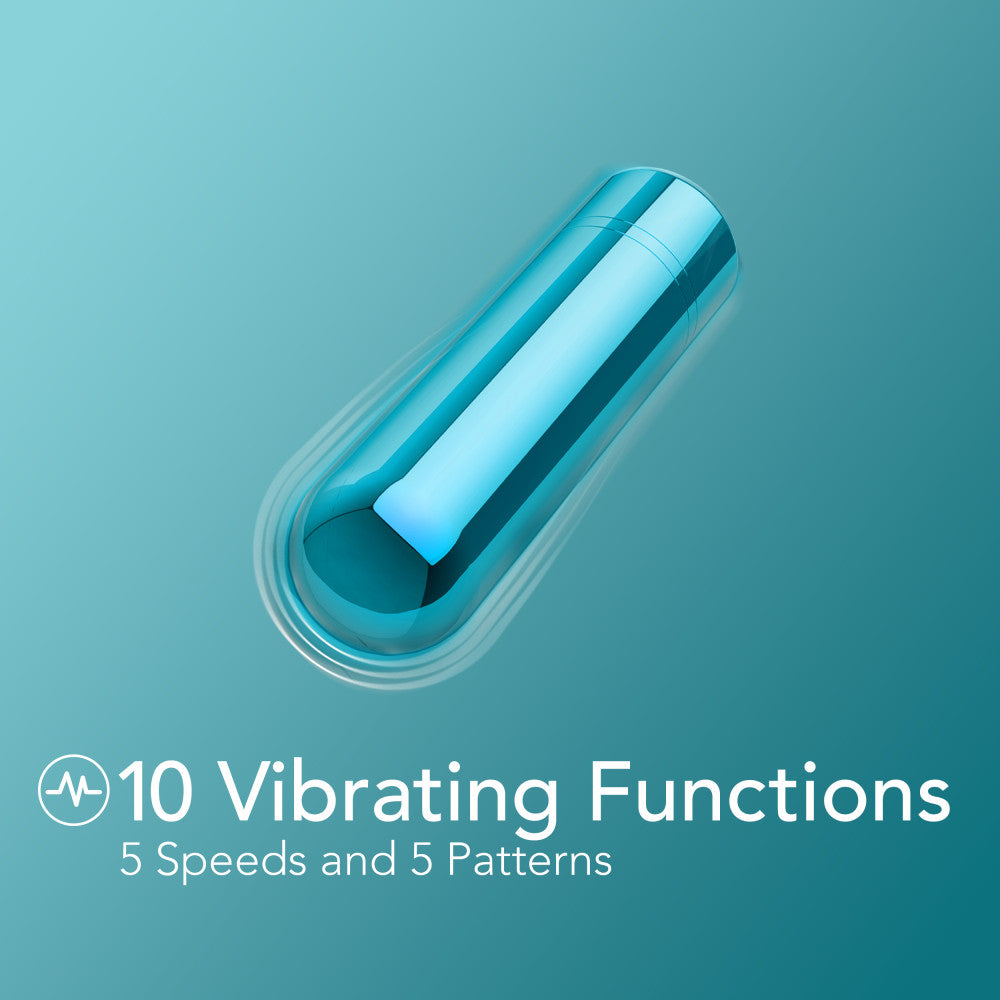 Get ready to vibe out with Kool Vibes. Flaunting a vibrant, blueberry-coloured design, this mini bullet adds a super playful pop to any collection. It’s a game changer for your pleasure, with a compact & travel-friendly shape that’s fit for fun at home or on-the-go. Although small in size, this lil’ pocket-sized vibrator packs a punch. You’ll love the 10 high performing vibration modes, that offer pinpoint clitoral stimulation from its guided, tapered tip. Cycle through 5 speeds & 5 patterns effortlessly with just one touch of a button, as waves of sensations fulfill your every desire.