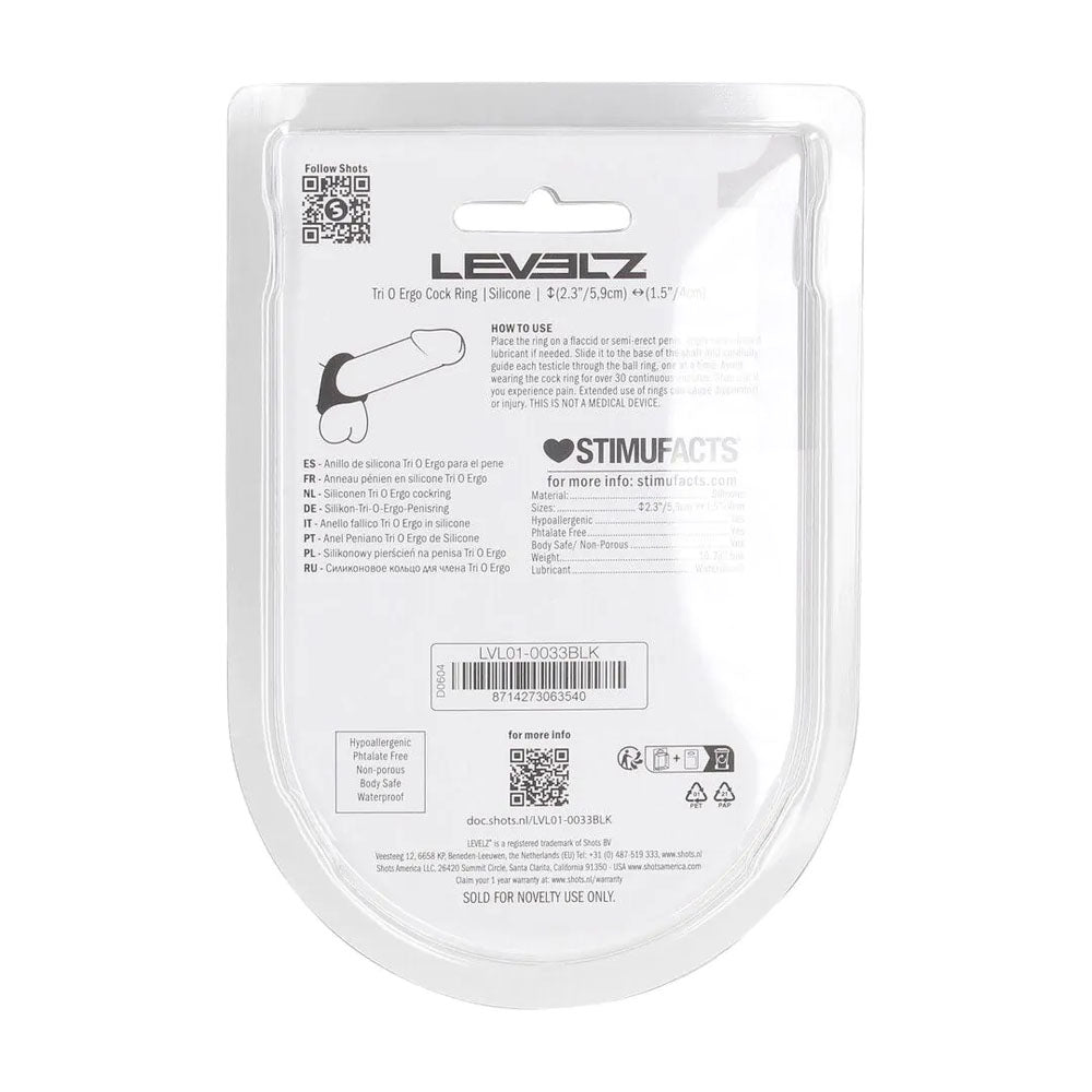 Take full control with the Tri-O Ring from the LEVELZ collection. Featuring three connected loops for shaft, cock & balls, and full package support, this non-vibrating ring maximises pressure and prolongs pleasure. Made from premium, body-safe silicone and packaged in a bold, merchandisable clamshell, the Tri-O is built for players who want more structure and sensation.