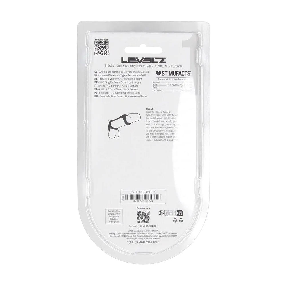 This Tri-O design from the LEVELZ collection features three connected loops: one for the shaft, one for the cock & balls, and an additional stabilising ring for a secure, full-package fit. Crafted from smooth, body-safe silicone, this non-vibrating harness-style ring enhances pressure, control, and visual appeal. Packaged in a sleek clamshell for bold retail impact.