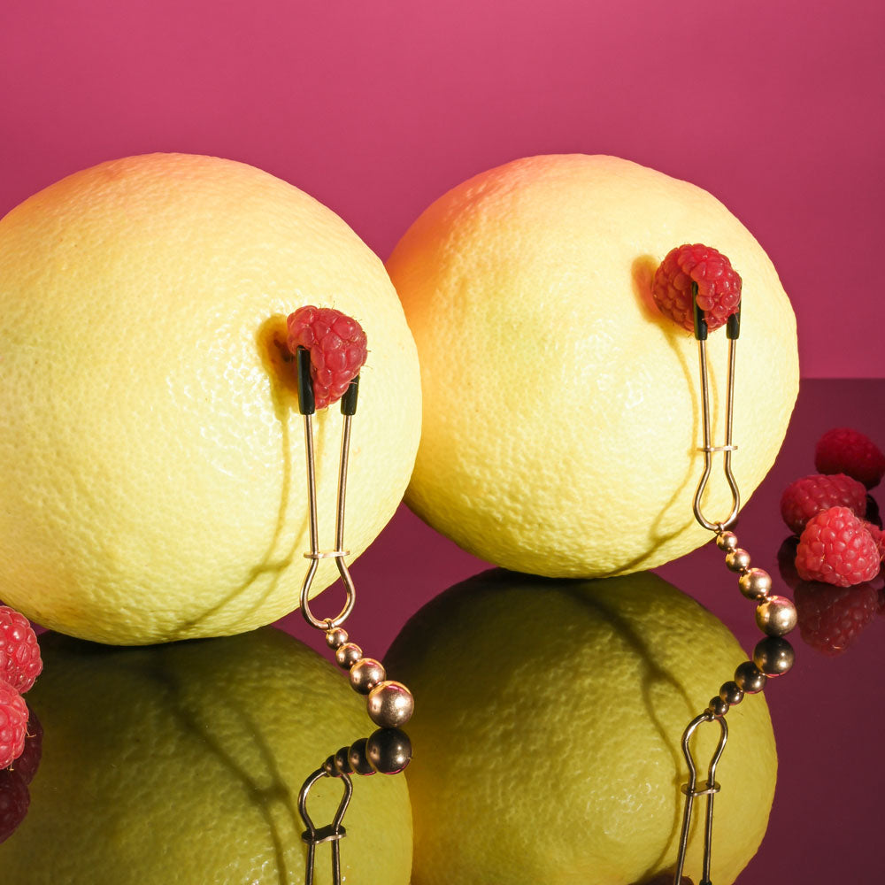 Discover the erotic sensation of nipple clamps with hanging beads that deliver a delicious weighted sensation and sexy visual appeal.