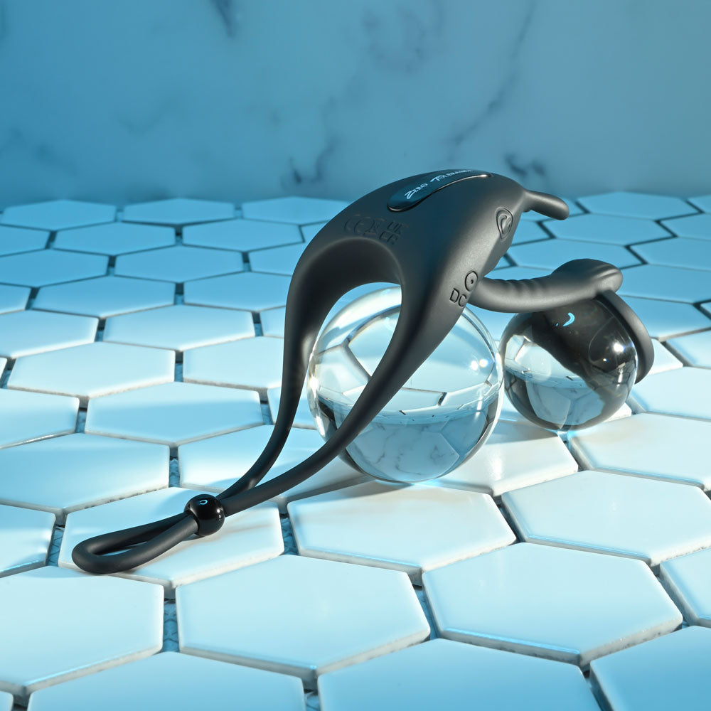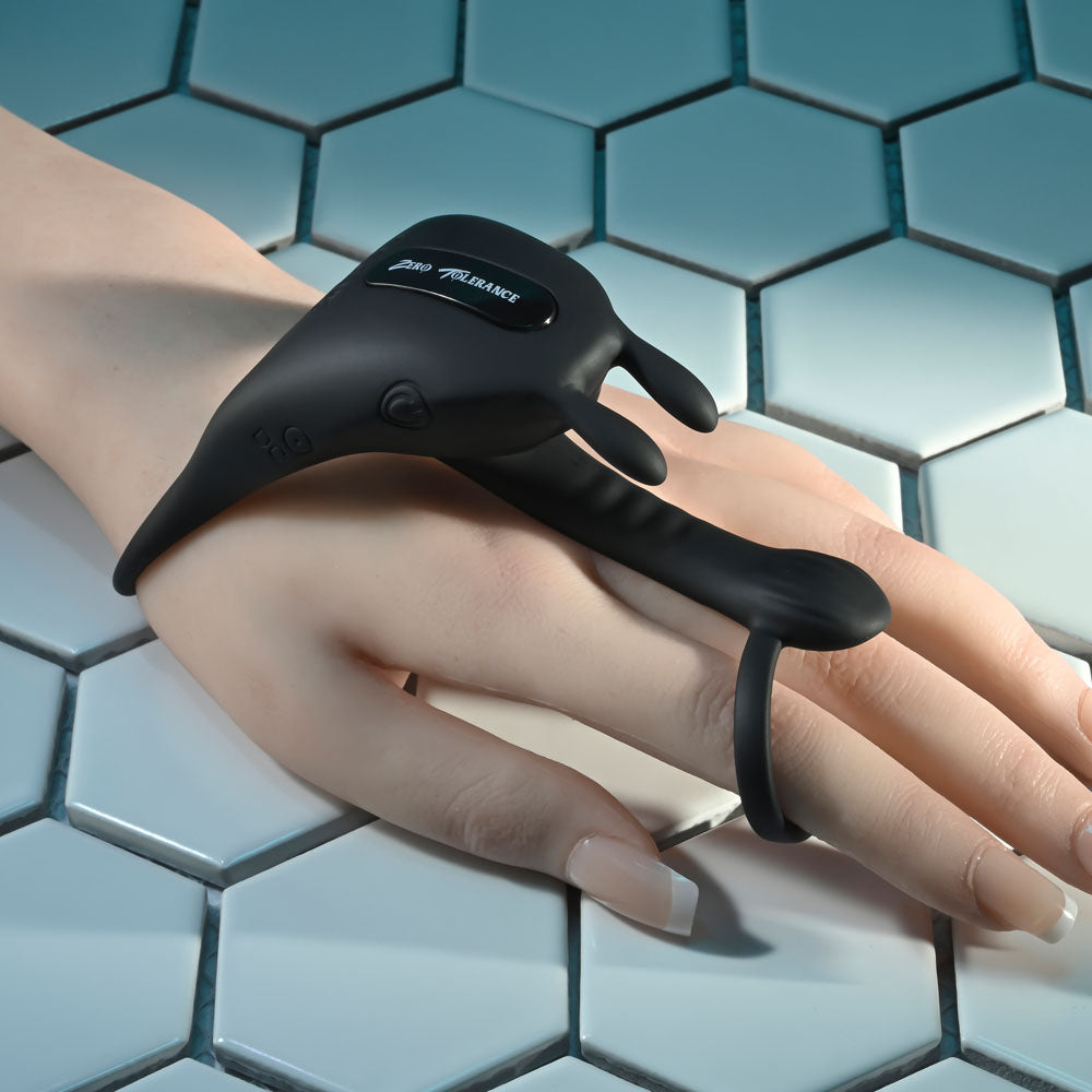 Saddle up with this innovative penis ring and girth enhancer that features a tightening draw string for a custom fit. A front ring holds the flexible vibrating shaft in place while bunny ears deliver intense vibes simultaneously for a double-motor experience.